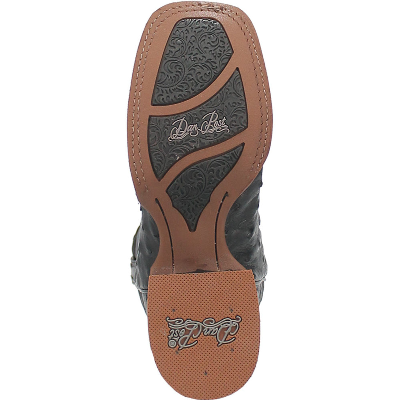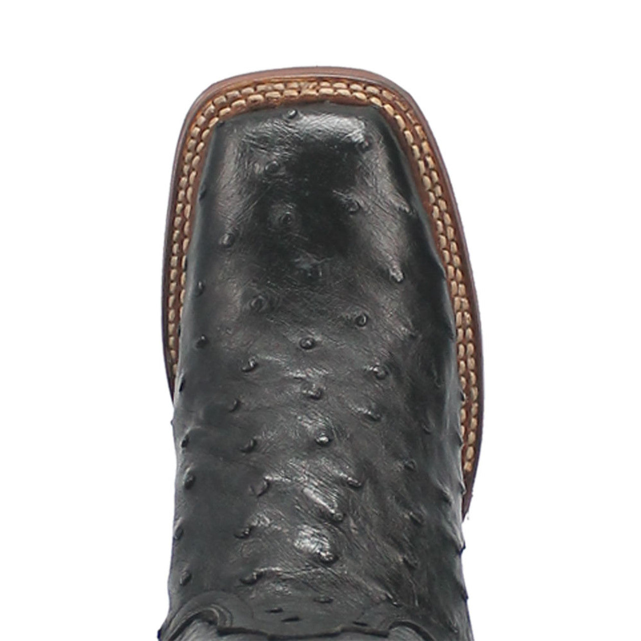 Step into luxury with the Dan Post Kylo Black Full-Quill Ostrich Boots. These boots are the epitome of Western sophistication, featuring an exotic full-quill ostrich foot and a sturdy 12” leather shaft. The broad square toe provides a relaxed fit, while the Stockman heel ensures stability and comfort whether you're working or stepping out for a night on the town. Crafted with care and attention to detail, the Kylo boots blend rugged Western roots with a striking modern design, making them a must-have for any discerning cowboy.