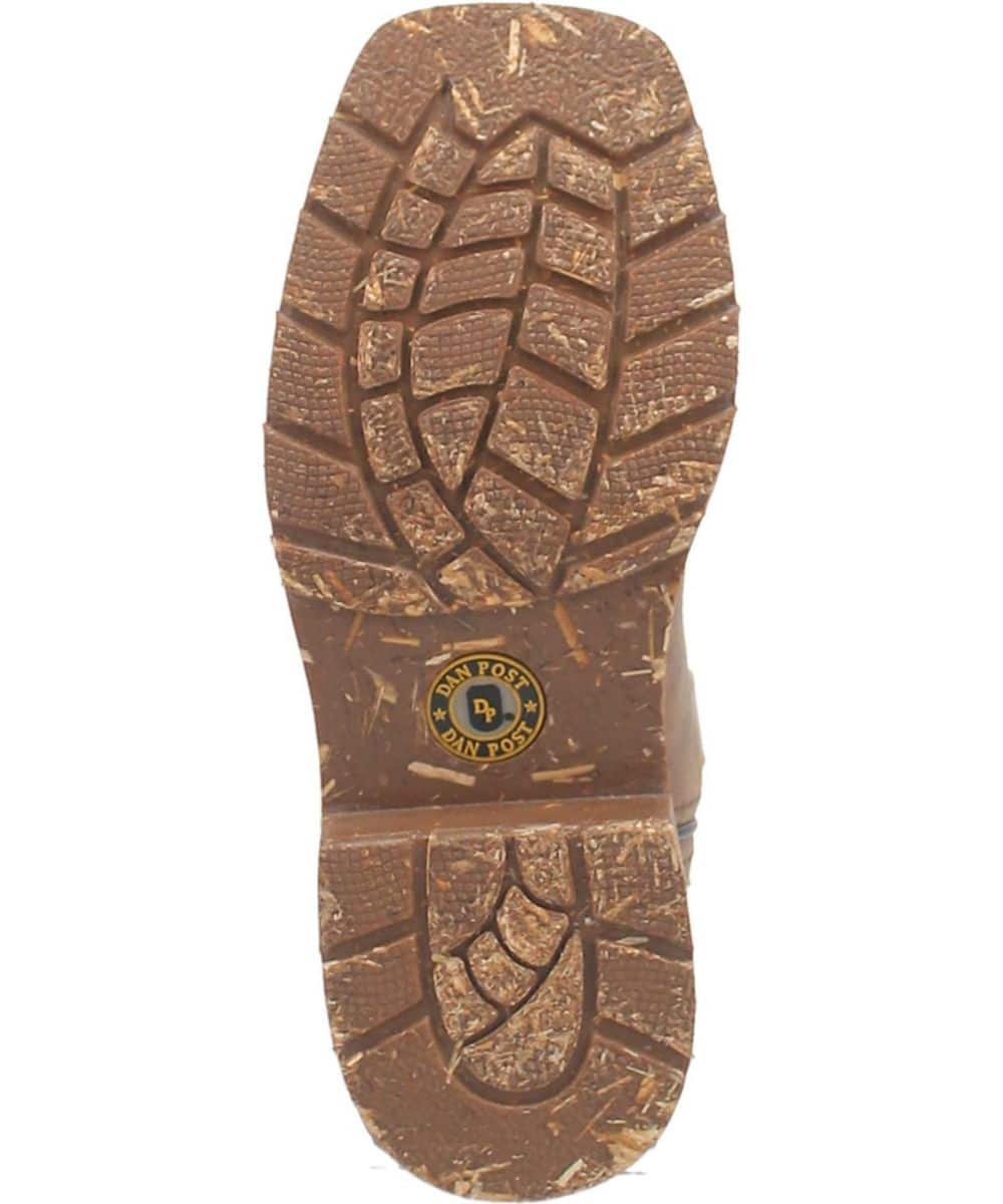 8″ Shaft; Leather; Dark Brown Leather Inlays On Shaft; Pull Tabs For Easy On; Removable Orthotic Insole; Double Stitched Welt; Digger Rubber Outsole; Stockman Heel; Broad Square Toe; Color: Tan; Style #DPC2981