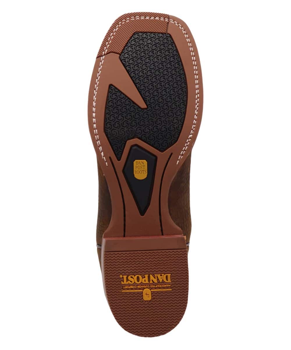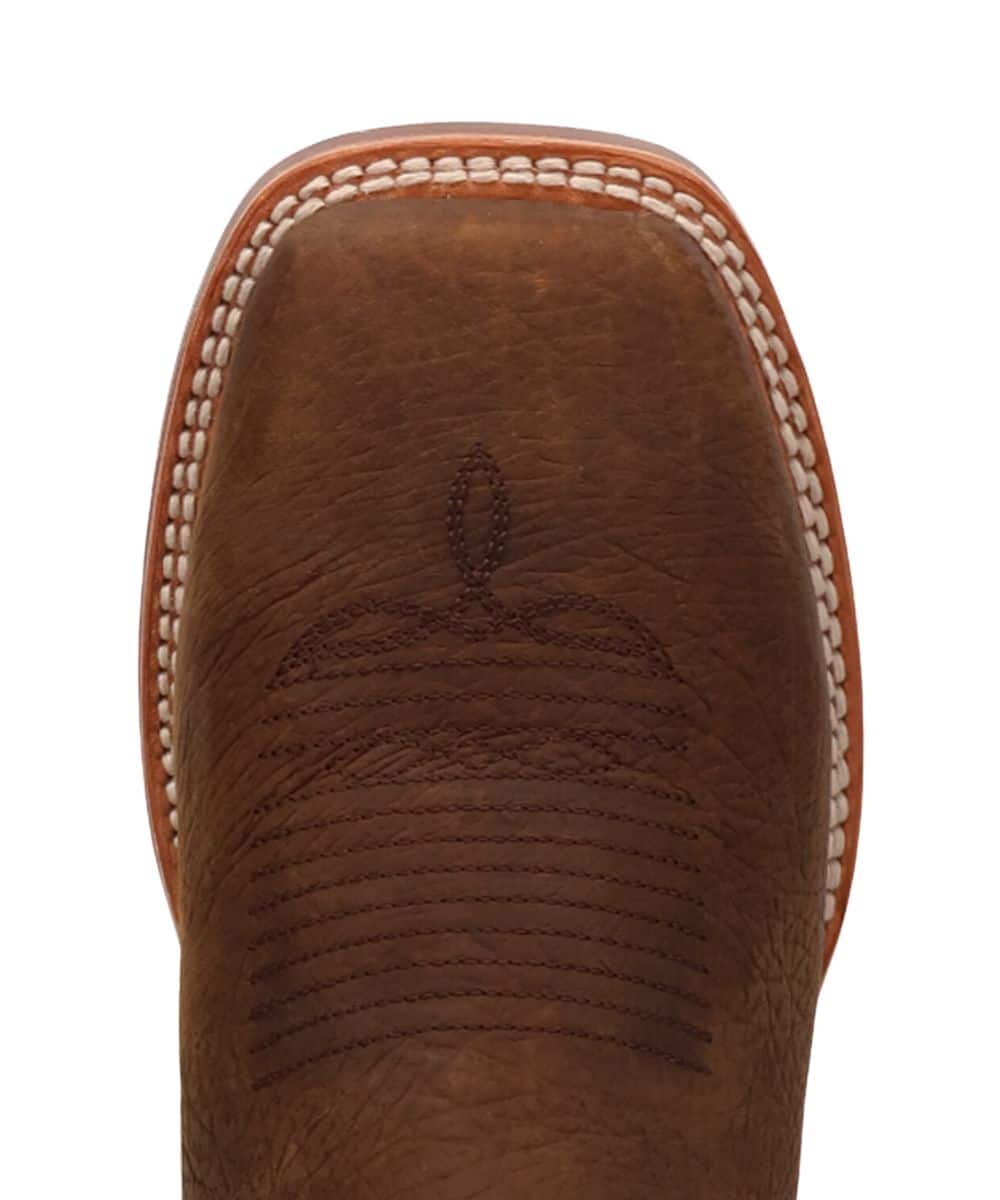 11″ Shaft; Leather Boot; Chocolate Foot; Tan Upper With Contrast Stitching; Leather Pull Tabs For Easy On; Removable Orthotic Insole; Avenger Rubber Outsole; 1″ Stockman Heel; Broad Square Toe; Cowboy Certified Boot; Style #DP5171