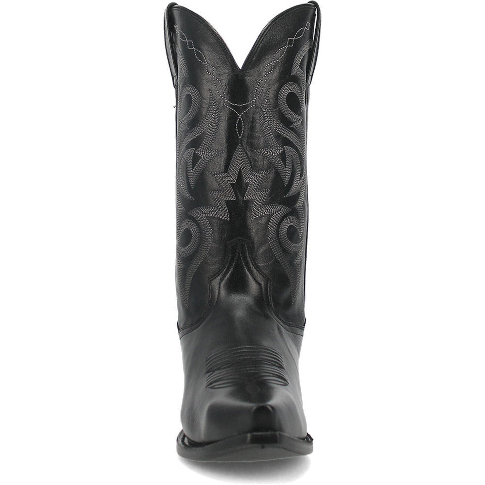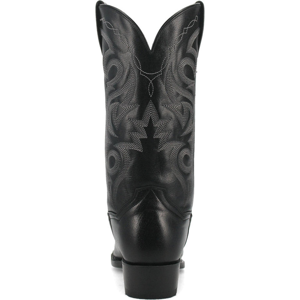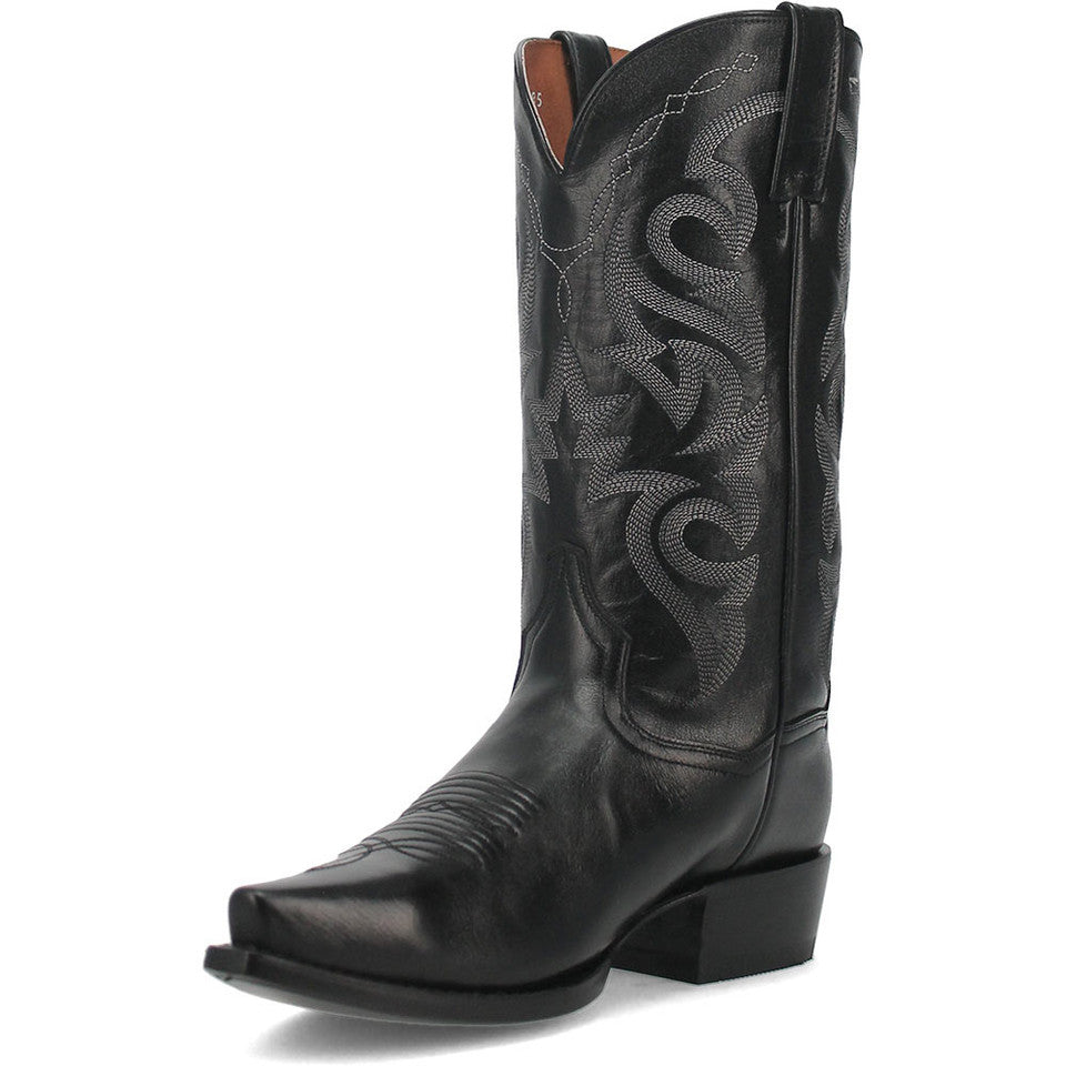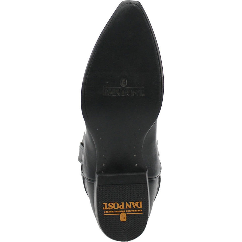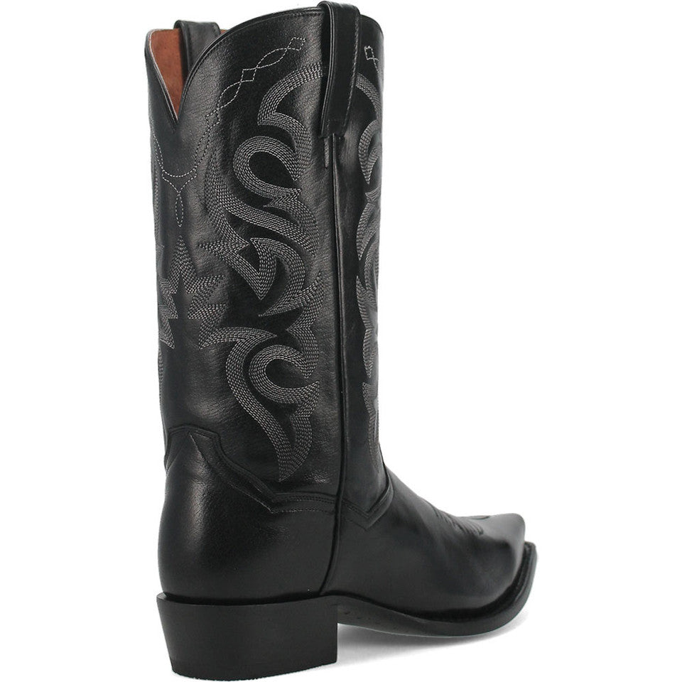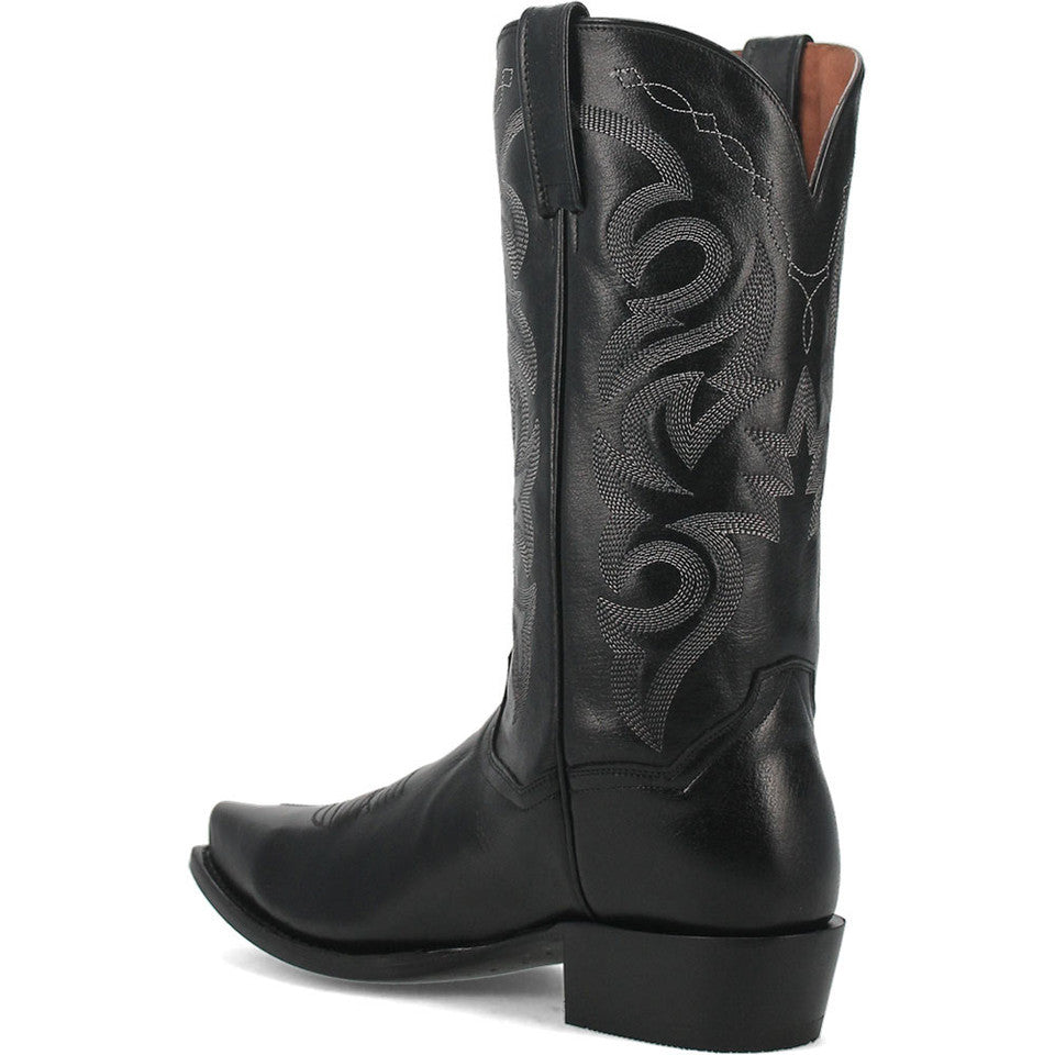 Experience the perfect blend of classic charm and modern comfort with the Dan Post Men's Milwaukee Western Black Boots. Crafted from full-grain leather, these boots boast durability and timeless style. The pull tabs make them easy to slip into, while the snip toe shape adds a touch of Western flair. With a leather lining and cushioned footbed, these boots ensure comfort with every step. The leather outsole offers traction and stability, while the Western heel completes the traditional cowboy look. Step out in style and confidence with the Dan Post Men's Milwaukee Western Black Boots.