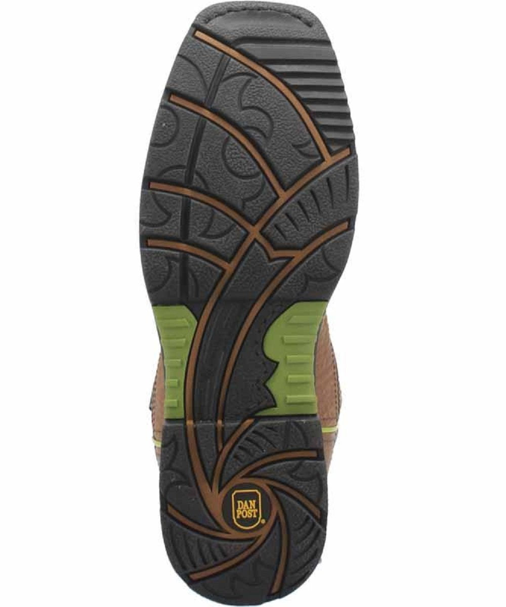 11″ Shaft; Full Grain Waterproof Leather Upper; Dark Brown Shaft With Lime Contrast Stitching; Pull Holes For Easy On; Antimicrobial Textile Lining; Removable Breathable Ortholite Orthotic Insole; Dual Density Midsole; Heat, Oil, And Slip Resistant Rubber Outsole; Omni-Directional Tread; Electrical Hazard Protection ASTM F2413-18; Walking Heel; Broad Square Composite Toe ASTM F2413-18; Color: Brown; Style #DP59413