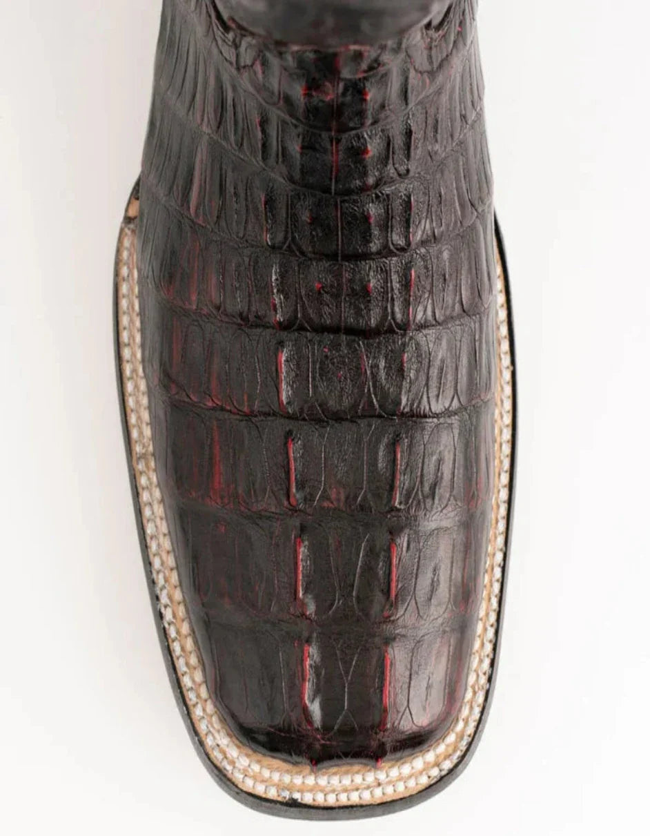 Ferrini Men's Dakota Hornback Caiman Boots - Square Toe Handcrafted Black Cherry