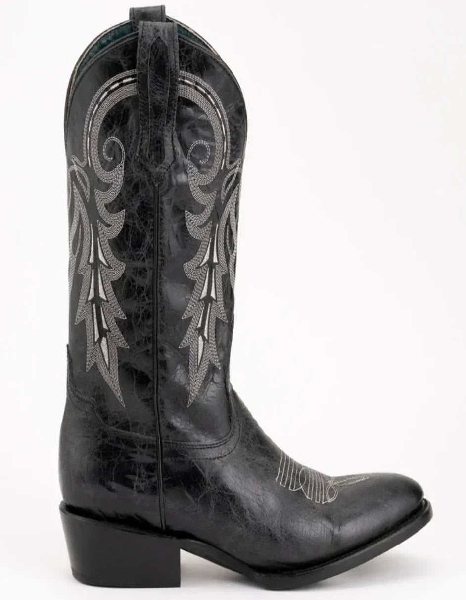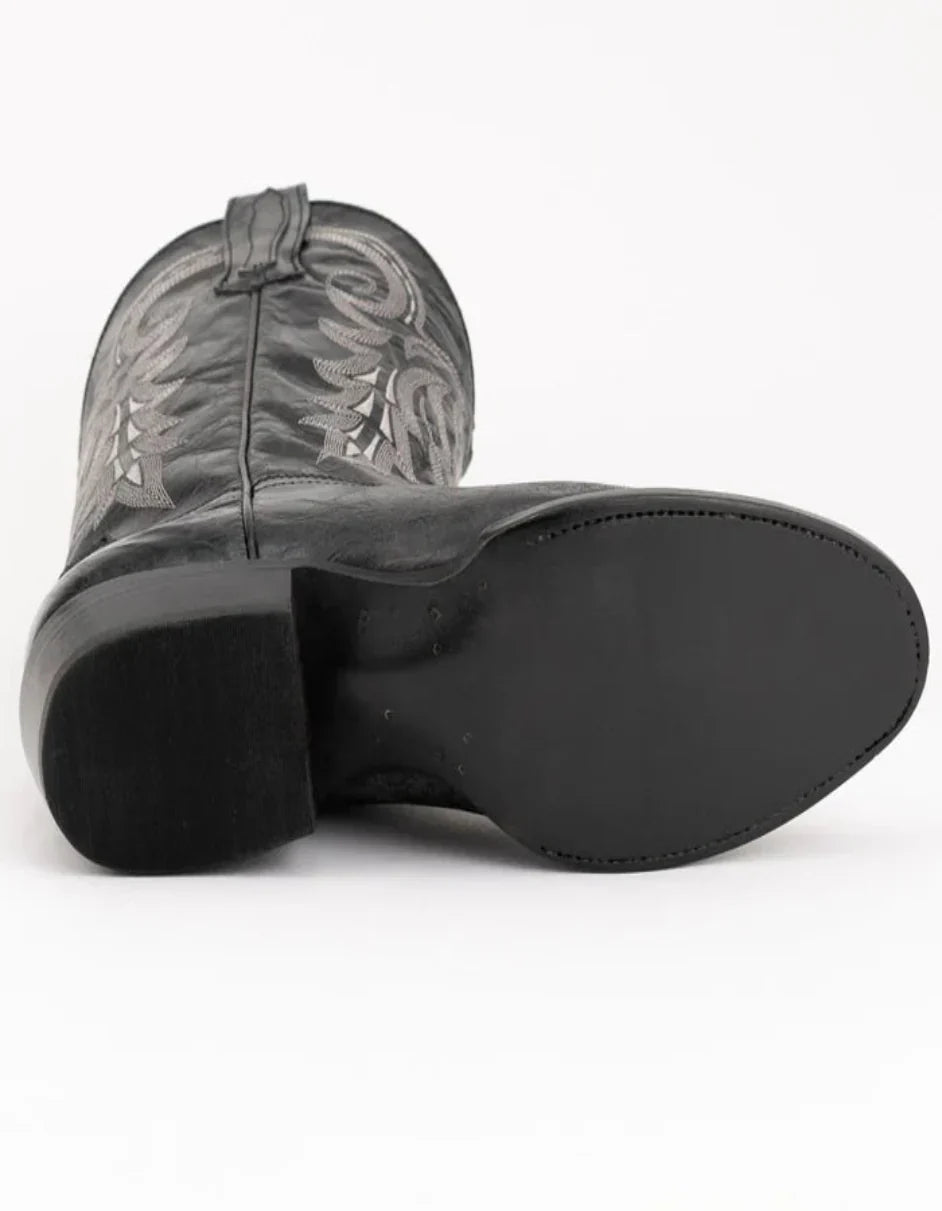 Heel: 1 1/2" Cowboy Outsole: Leather Toe: Round Toe Width: D & EE Vamp: Full Grain Leather Color: Black