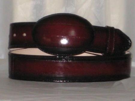 • Cinturón de vaquero occidental auténtico de piel de anguila color burdeos descolorida.