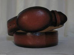 • Cinturón vaquero occidental de teju con piel de lagarto color coñac descolorido genuino.