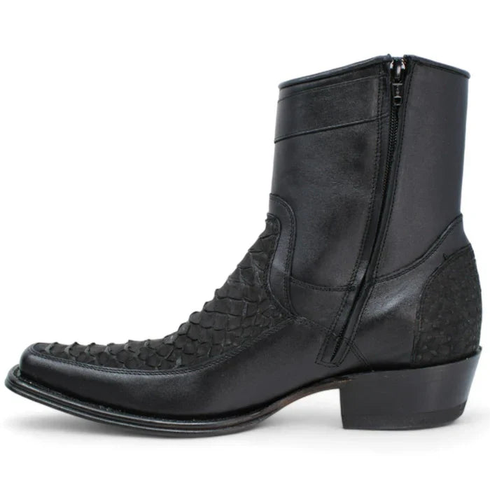 Botas cortas con punta europea de piel de pitón original para hombre de Los Altos - Negro