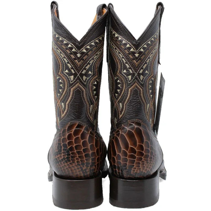Botas de piel con punta cuadrada y estampado de pitón para hombre, color marrón