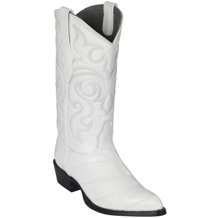 Stand out from the crowd with Los Altos Men's J-Toe Eel Skin Cowboy Boots in striking white. Crafted from genuine eel skin leather, these boots feature a bold texture and sleek design that’s sure to make a statement.
