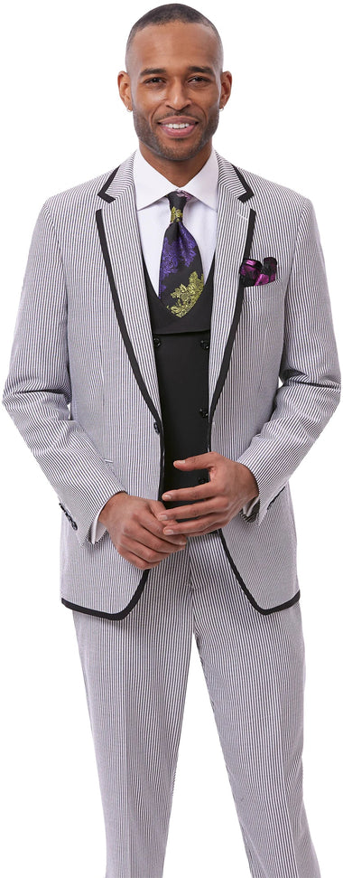 Este traje de corte moderno presenta una solapa ancha en pico, cierres de 1 botón, chaleco cruzado,...
