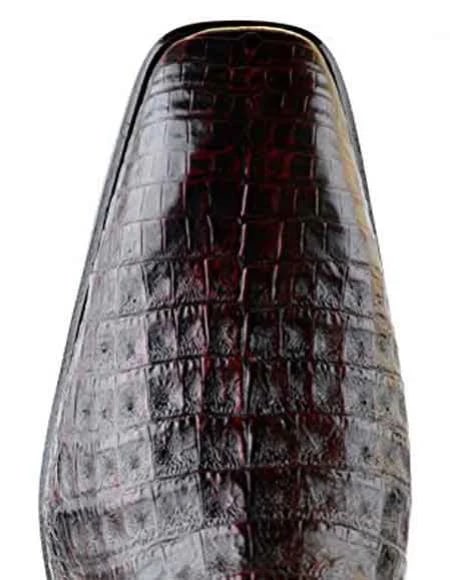 Piel de cocodrilo Suela de cuero Punta cuadrada Forro de cuero Material: Cuero Color: Cereza negra