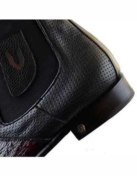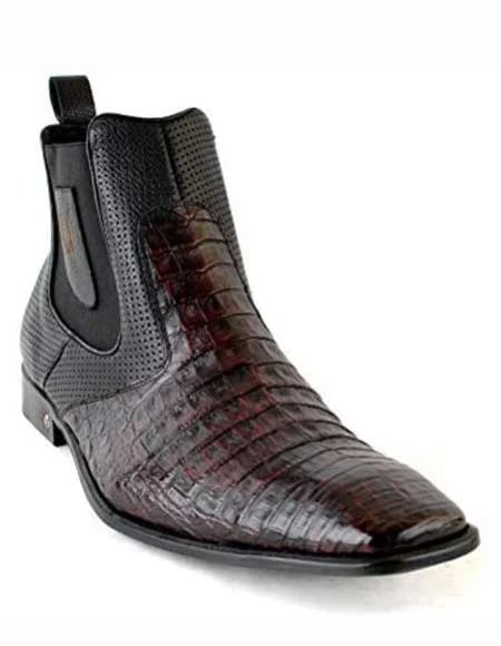 Botas cortas de piel de cocodrilo originales con punta cuadrada y acabado en cerezo negro para hombre