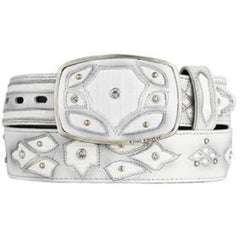 Cinturón occidental de moda para hombre de piel de teju y lagarto original de color blanco