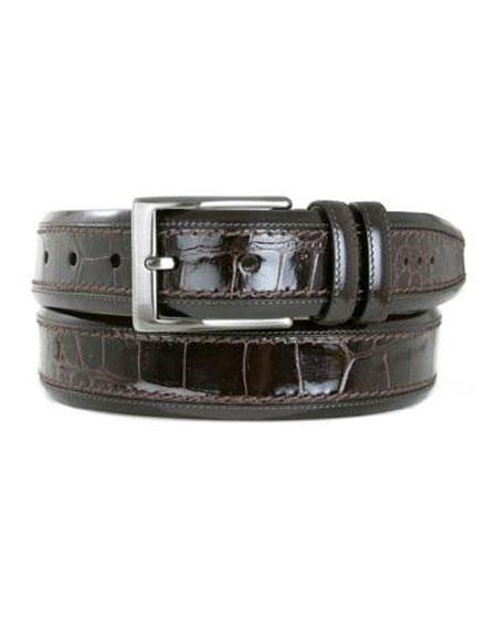 Cinturones Mezlan para hombre hechos a mano de piel de cocodrilo auténtica marrón Cinturon De Cocodrilo
