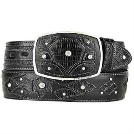 Cinturón occidental de moda Piel de lagarto teju Color: Negro