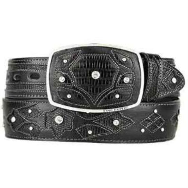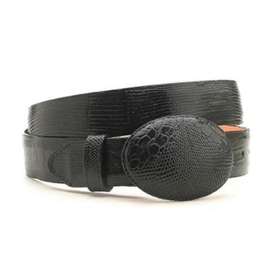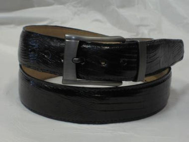 Cinturón estilo occidental con piel de lagarto teju original en color negro cereza