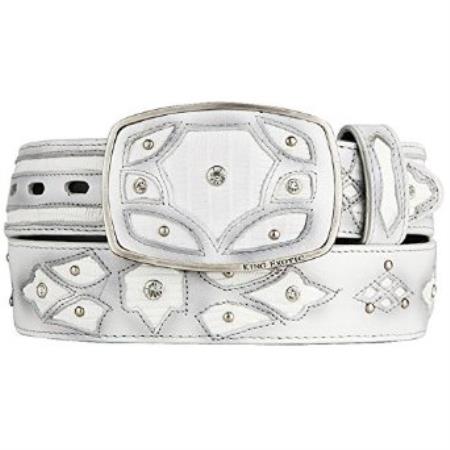 Cinturón occidental de moda Piel de lagarto teju Color: blanco