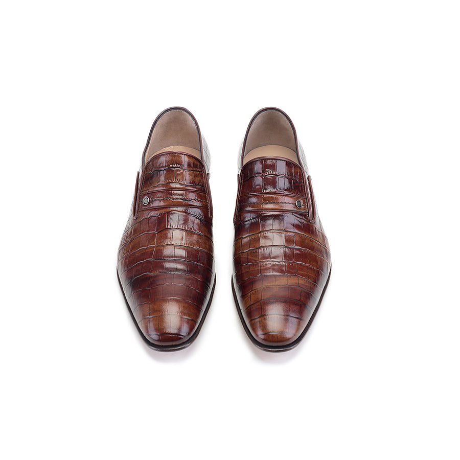 Expertly crafted with a classic crocco print, this Loafer exudes timeless elegance. The supple leather provides luxurious comfort, making it the perfect addition to any sophisticated wardrobe. Enhance your style with this versatile and stylish loafer.
