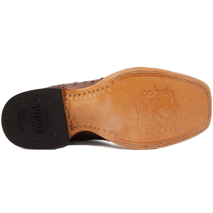 Botas de punta cuadrada de avestruz con pluma completa genuina para hombre de Tanner Mark en madera de cerezo