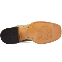 Botas de piel de avestruz con punta cuadrada y piel auténtica de Tanner Mark para hombre, color verde oliva