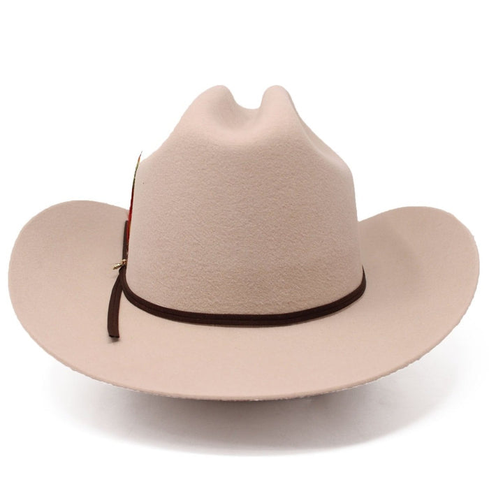 Esta hermosa Texana de la marca Morcon es una excelente elección para los amantes del estilo Western. Hecha en calidad 20X y con una pluma en la toquilla que resalta mucho a la vista, esta texana es una verdadera obra de arte. La fina lana de borrego utilizada para su fabricación es suave al tacto y cálida en el invierno, y su copa 4 1/2 y su ala de 3 1/2 le dan una forma perfecta para el clásico estilo Sinaloa.