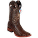 Mens brown full quill ostrich wide square toe cowboy boots by Wild West Boots.