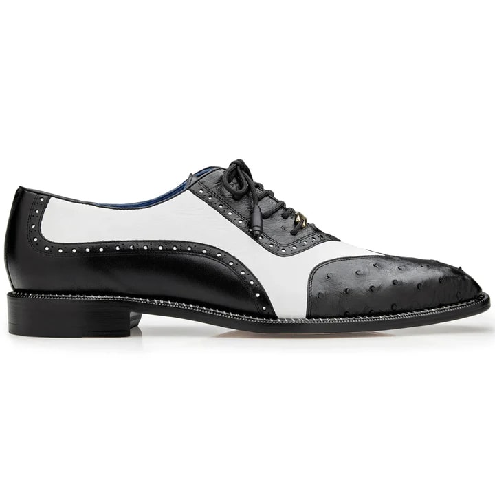 Zapatos Negros De Hombre - Zapatos Negros De Vestir - Men's Belvedere Sesto Italian Calf & Ostrich Quill Wingtip Dress Zapato blanco y negro