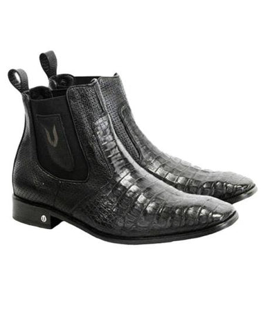 Los Altos Black Genuine Caiman Crocodile Hornback Ankle Boots