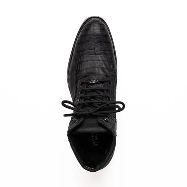 Marco Di Milano Leoni Men's Shoes Oil Black Genuine Caiman Crocodile Rugged Boots Material: Genuine Caiman Crocodile Lining: Full Leather Cushioned Color: Oil Black Hardware: Brass Hardware Ornament: Signature Marco Di Milano Lace bar Sole: Rugged Rubber Outsole- $770.00