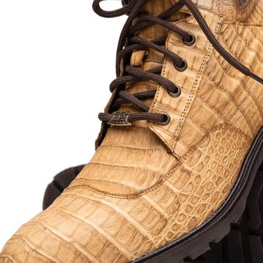 Marco Di Milano Leoni Men's Shoes Oil Orix Genuine Caiman Crocodile Rugged Boots Material: Genuine Caiman Crocodile Lining: Full Leather Cushioned Color: Oil Orix Hardware: Brass Hardware Ornament: Signature Marco Di Milano Lacebar Sole: Rugged Rubber Outsole.- $770.00