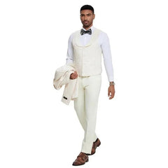 2024 Ivory Paisley 3pc Men's Suit Tuxedo by Tazzio