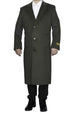 3 Button Full Length Wool Dress Ankle length Top Coat/Overcoat In Dark Olive Green - Mens Topcoat
