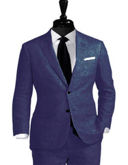 Alberto Nardoni Linen Dark Navy Blue Vested 3 Pieces Summer Linen Wedding/Groom/Groomsmen Suit Jacket & Pants & Vest Suit - Mens Linen Suit