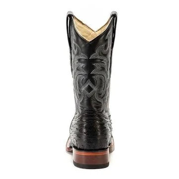 Botas de Avestruz Original Punta Cuadrada Ancha Color Negro