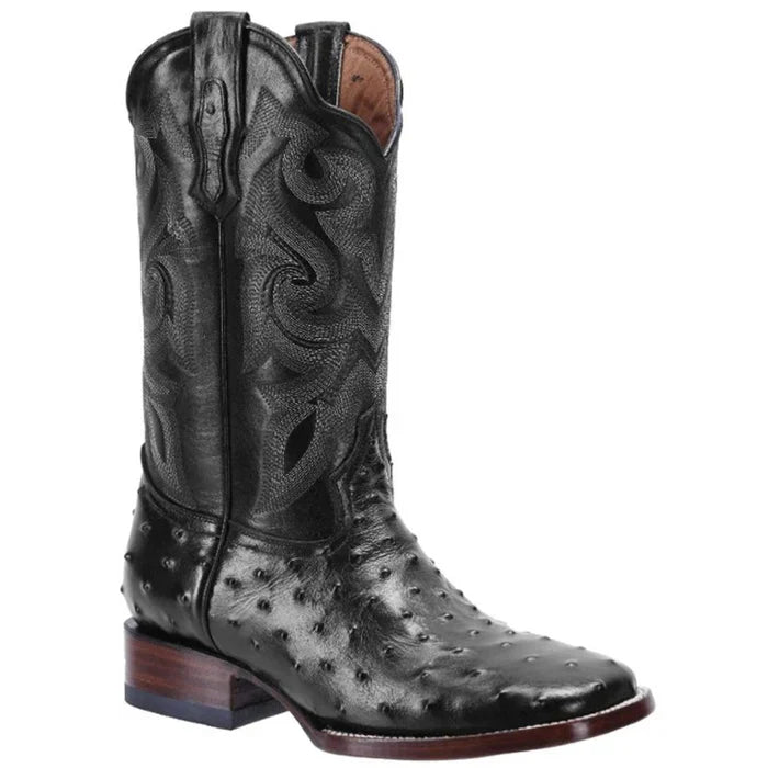 Botas de Avestruz Grabado Horma Rodeo Cuadrada Color Negro JB