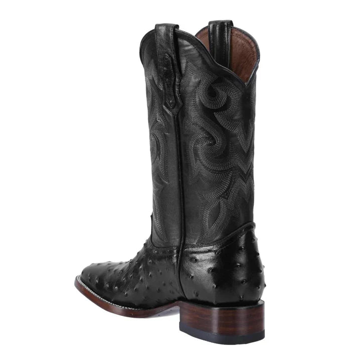 Botas de Avestruz Grabado Horma Rodeo Cuadrada Color Negro JB