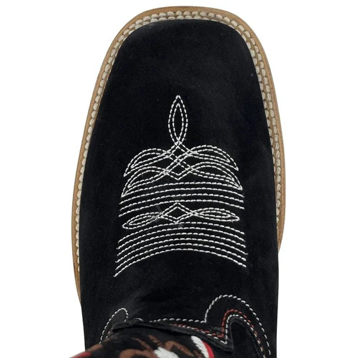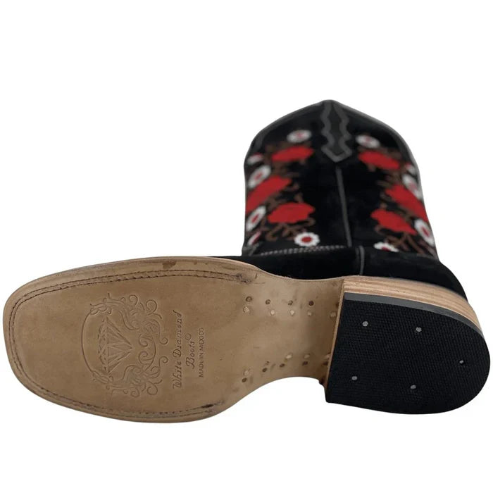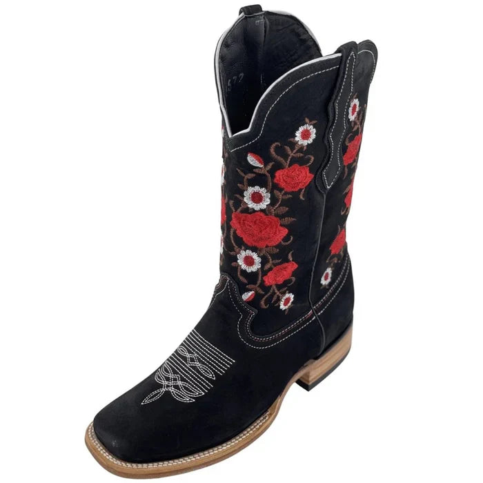 Hechas a Mano / Handcrafted?Fina Piel de Gamuza Nobuck OriginalColor: Negro con Rosas RojasPunta: Rodeo Cuadrada (Square...