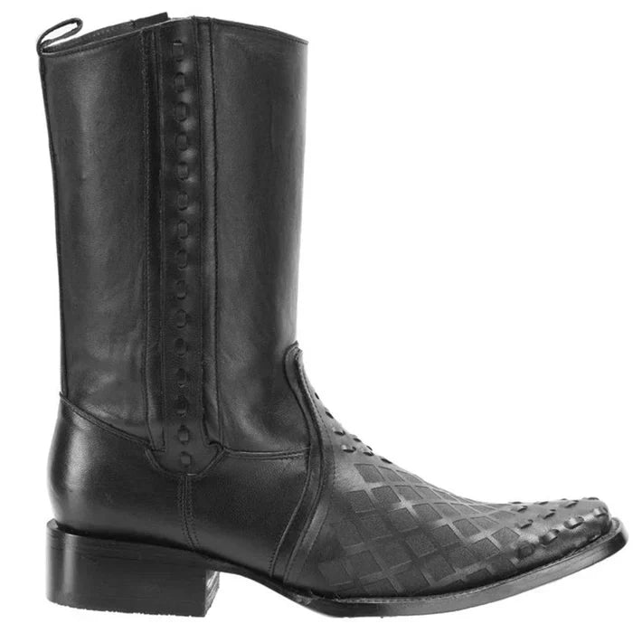 Botas de Cuero Tejido Horma Rodeo Cuadrada Color Negro JBBLACK