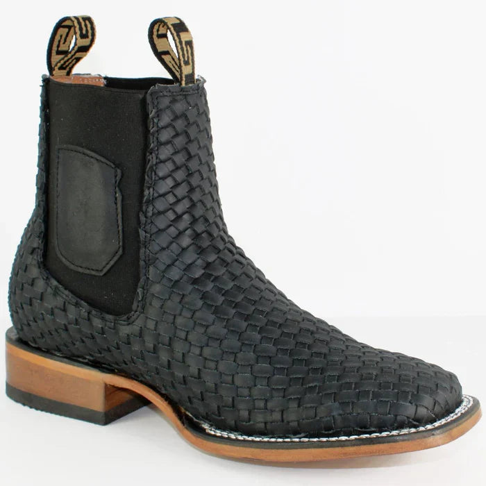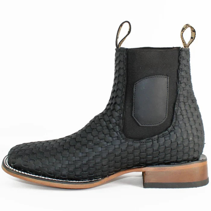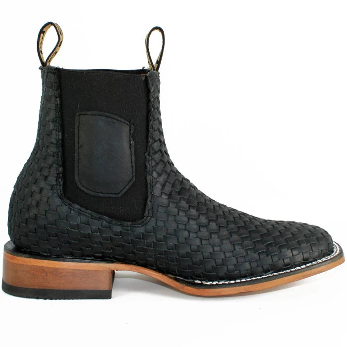 Botines Charros Hooch Punta Cuadrada de Petatillo Original Negro