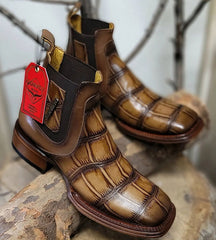Fina Piel de Cuero Vacuno con Cocodrilo Grabado