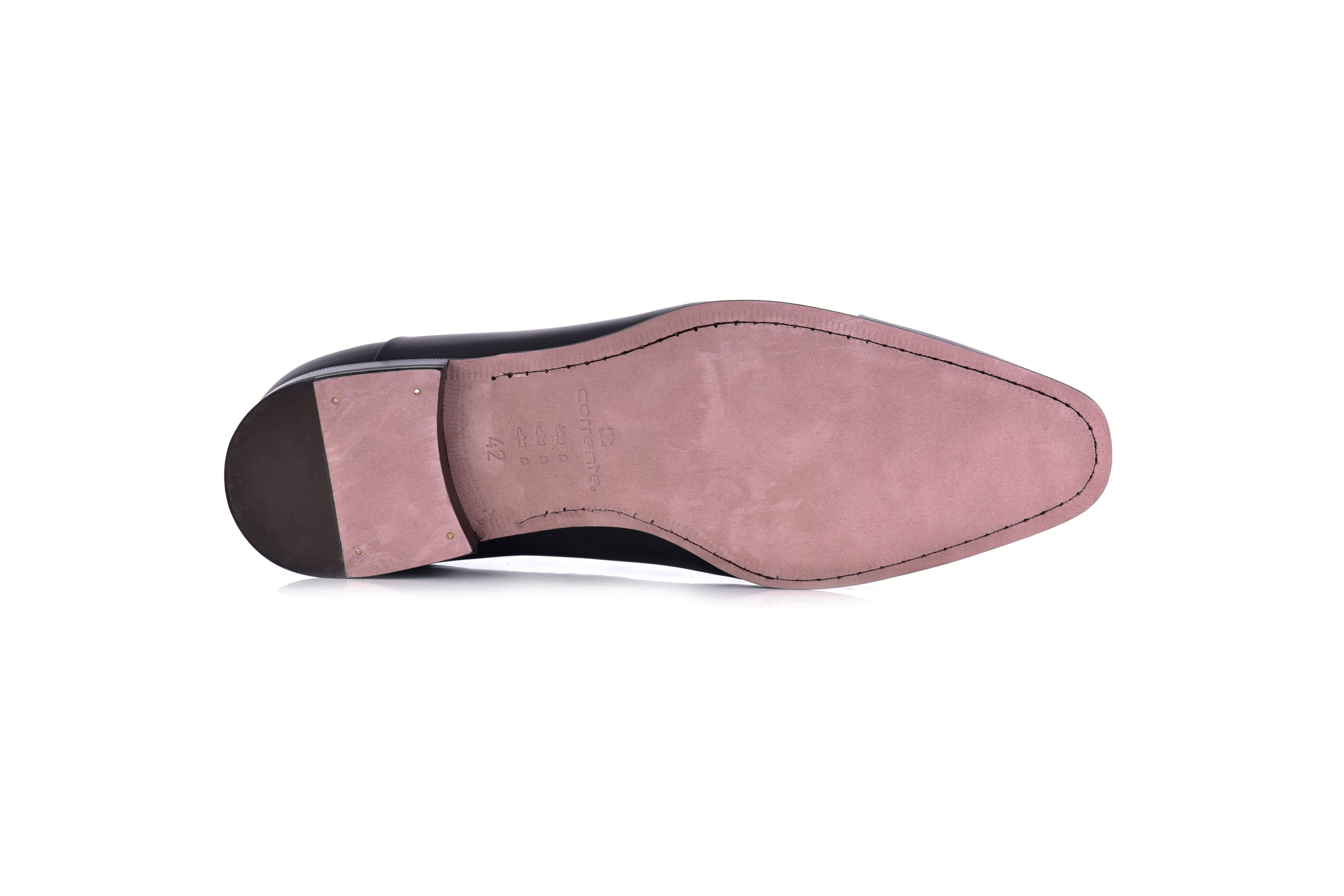 Classic cap toe lace-up in rich black leather delivers timeless sophistication with practical versatility. The structured toe cap adds visual interest and durability, while the lace-up closure ensures a secure, customizable fit. Ideal for professional settings, casual outings, or anywhere polished style matters. Premium construction meets everyday wearability in this essential wardrobe staple.