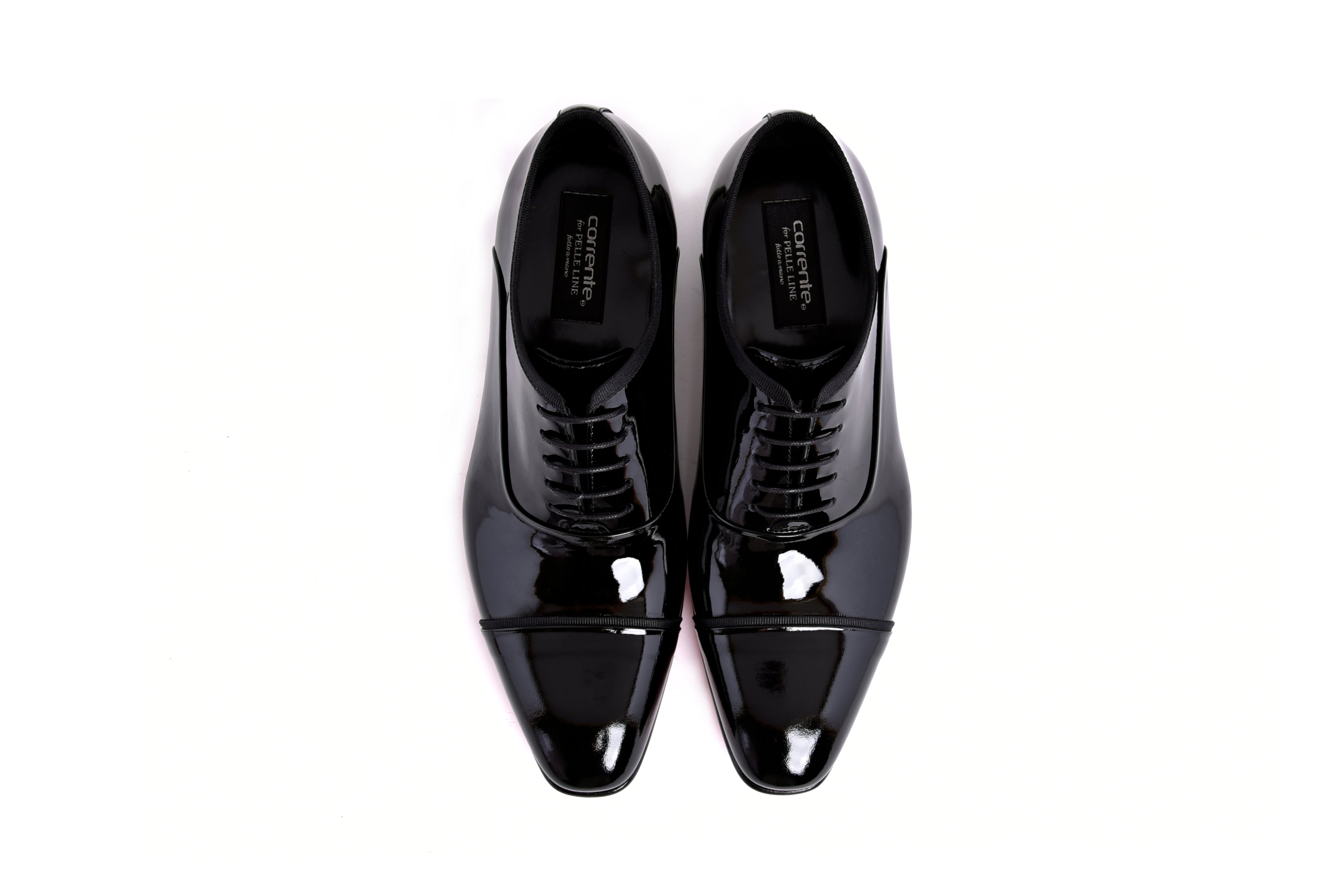 Elevate your style with the C0001102-7368P Cap Toe Lace Up in sleek black patent leather. Expertly crafted, this sophisticated shoe combines a timeless cap toe design with polished patent material for a refined finish. Perfect for formal occasions or sharp everyday wear, it offers both elegance and lasting durability.