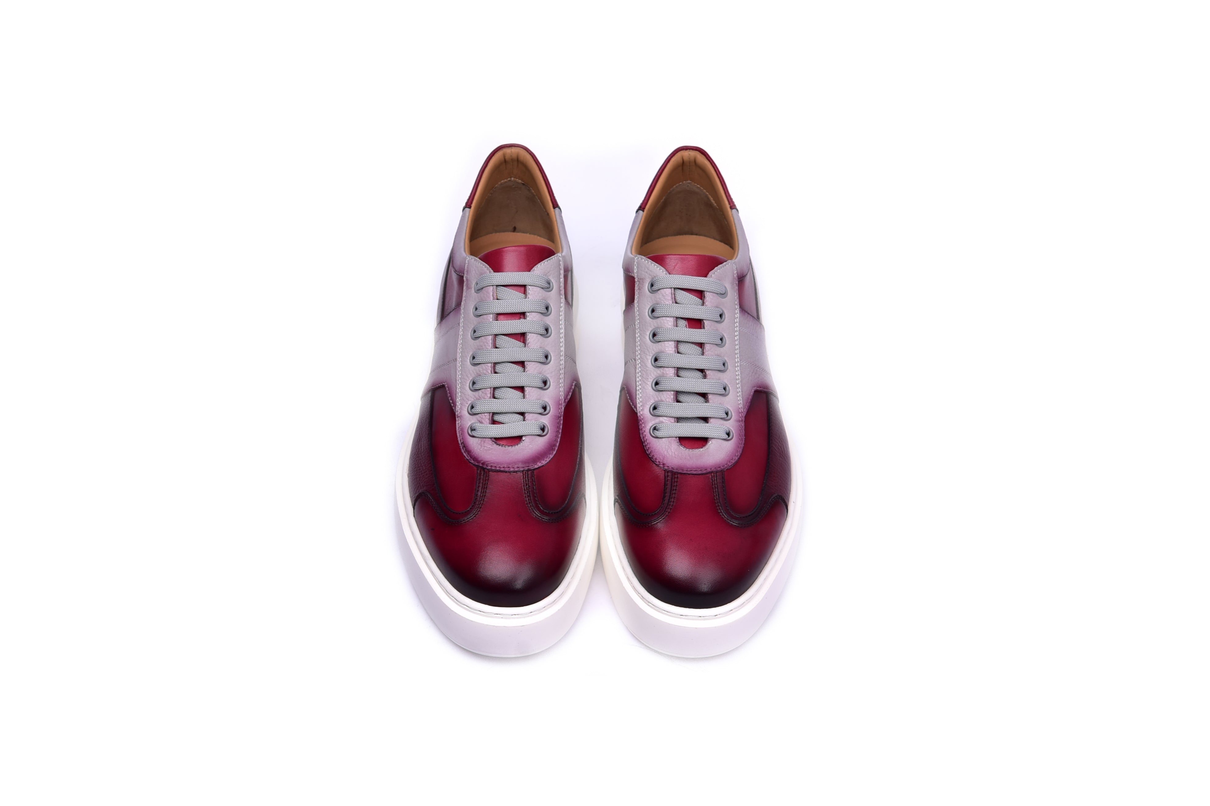 These fashion sneakers feature hand antique leather detailing, elevating any outfit with a unique touch. Embodying the perfect blend of style and craftsmanship, these sneakers offer a sophisticated and distinctive look. Perfect for the fashion-forward individual looking to make a statement.