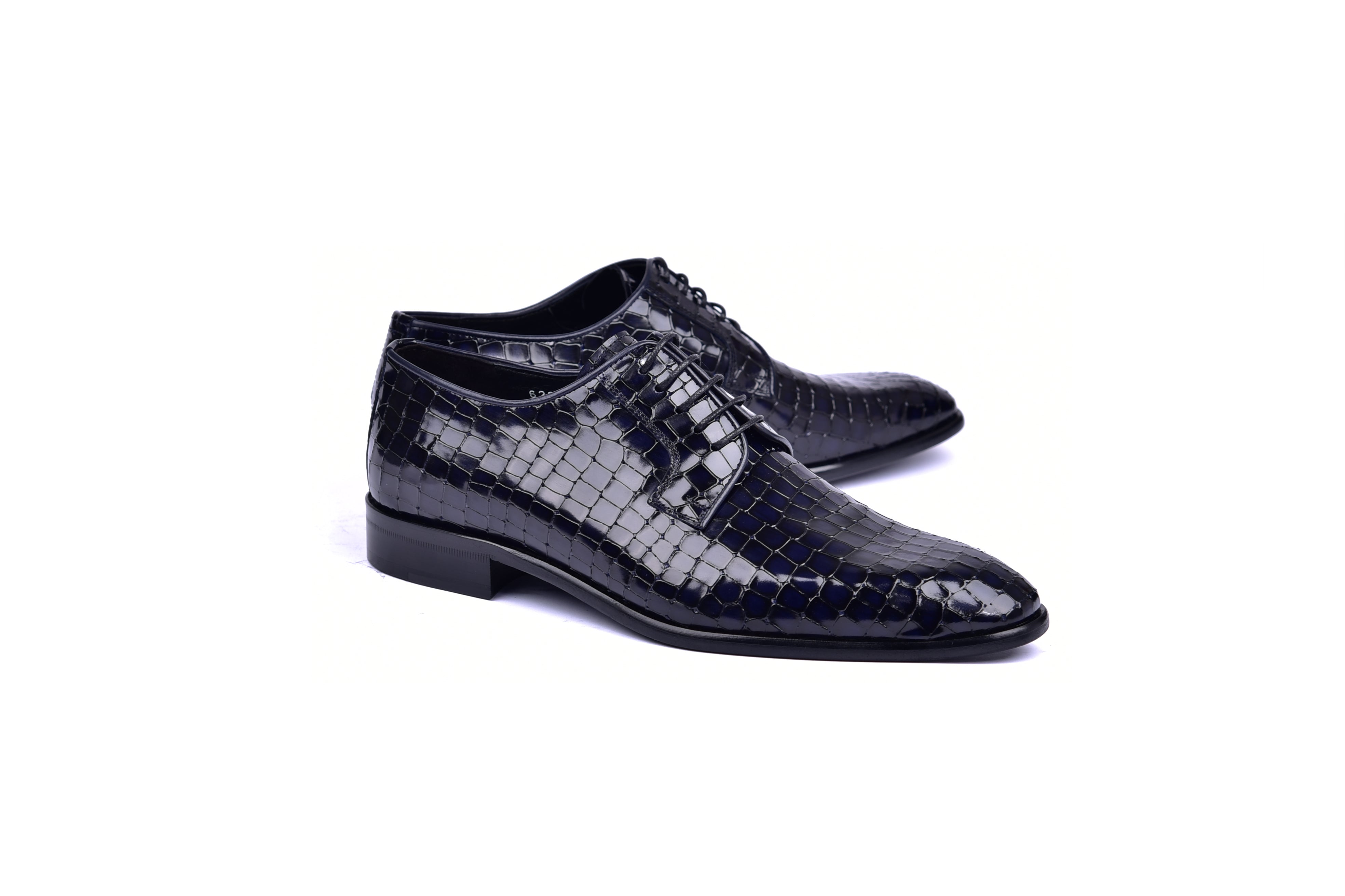 Step into sophistication with these luxurious navy lace-ups. The croco print adds a touch of elegance, while the lace-up design ensures a snug and comfortable fit. Elevate any outfit with these premium shoes.