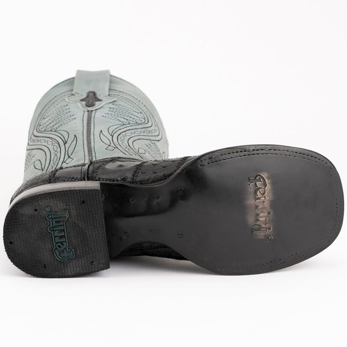 Ferrini Men's Pinto Patch Ostrich Square Toe Boots Handcrafted - Black
