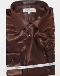Fer_SH1  Hombres lujoso brillante oscuro marrorn camisa