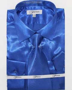 De los hombres Brillante Lujoso Camisa Color: Real Azul