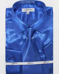 Fer_SH1 Hombres lujoso brillante real azul camisa