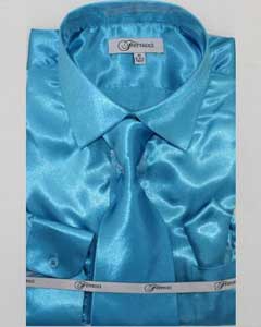 Color: Turquesa De los hombres Brillante Lujoso Camisa