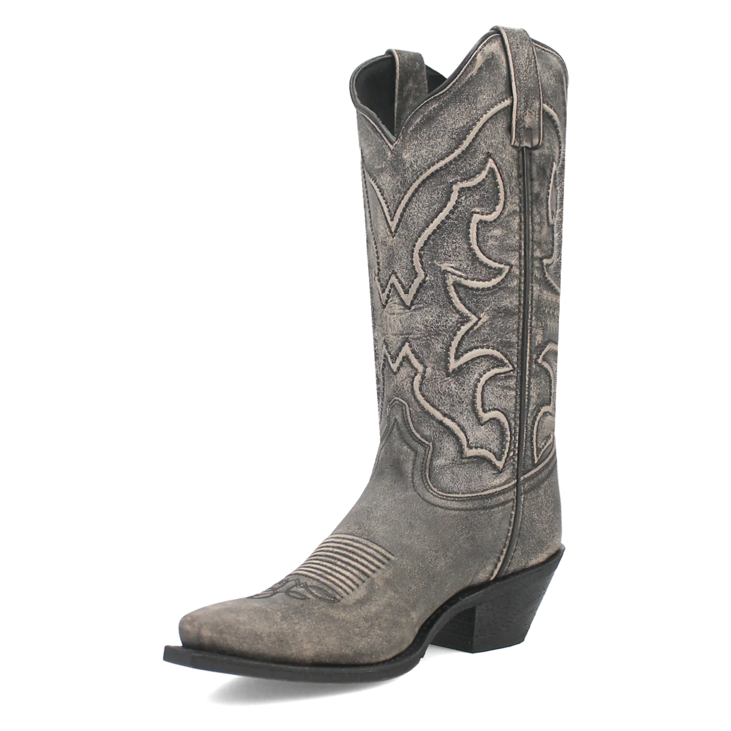 Black Leather Boot With Embroidery Detailing; Leather Pull Tabs For Easy On Cushion Comfort Insole Laredo Flex...