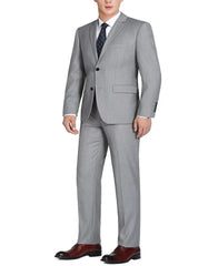 Light Grey Suit - Silver Gray Suit For Wedding - Mens Basic Two Button Slim Fit Light Grey Optional Vest Wool Suit
